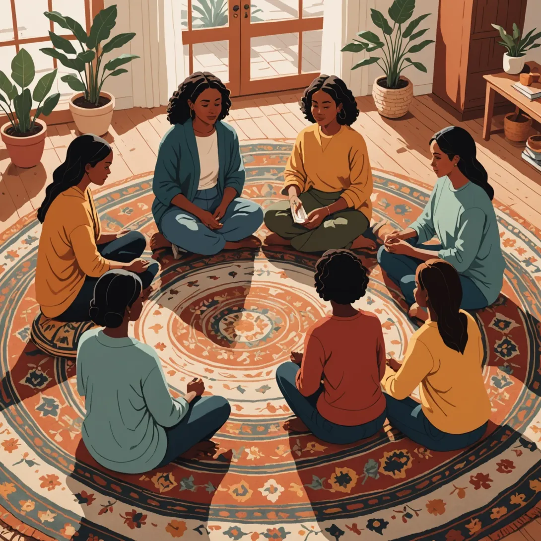 Женский круг — это встреча женщин, объединённых общей целью — поддерживать друг друга, делиться опытом и работать над личностным ростом. Такие встречи могут проходить как офлайн, так и онлайн, и отличаться темами — от психологии и здоровья до творчества и духовных практик.